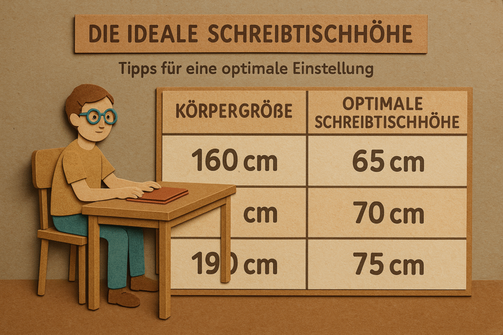 Übersichtstabelle: Körpergröße und optimale Schreibtischhöhe